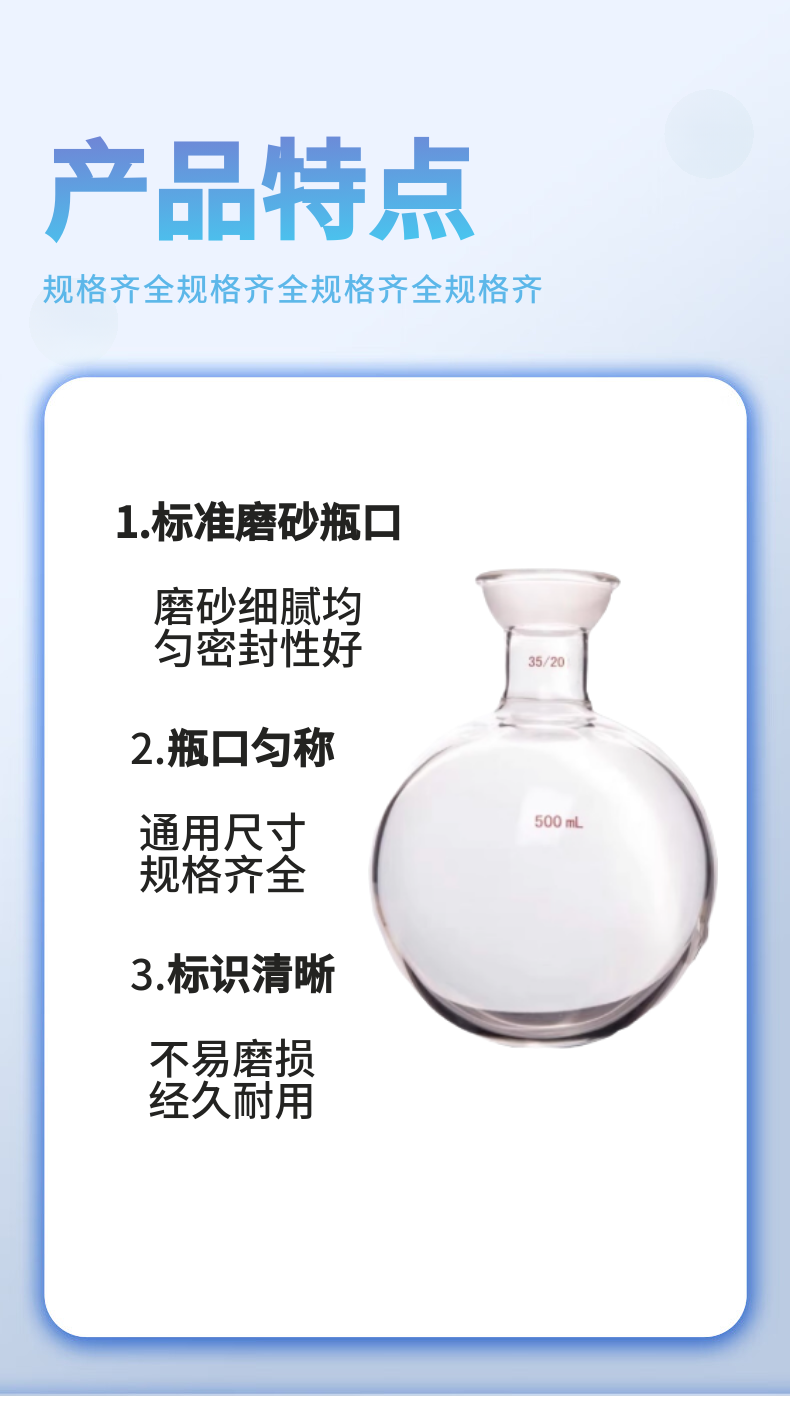 球磨口单口圆底球瓶,球磨口:35/20 100毫升