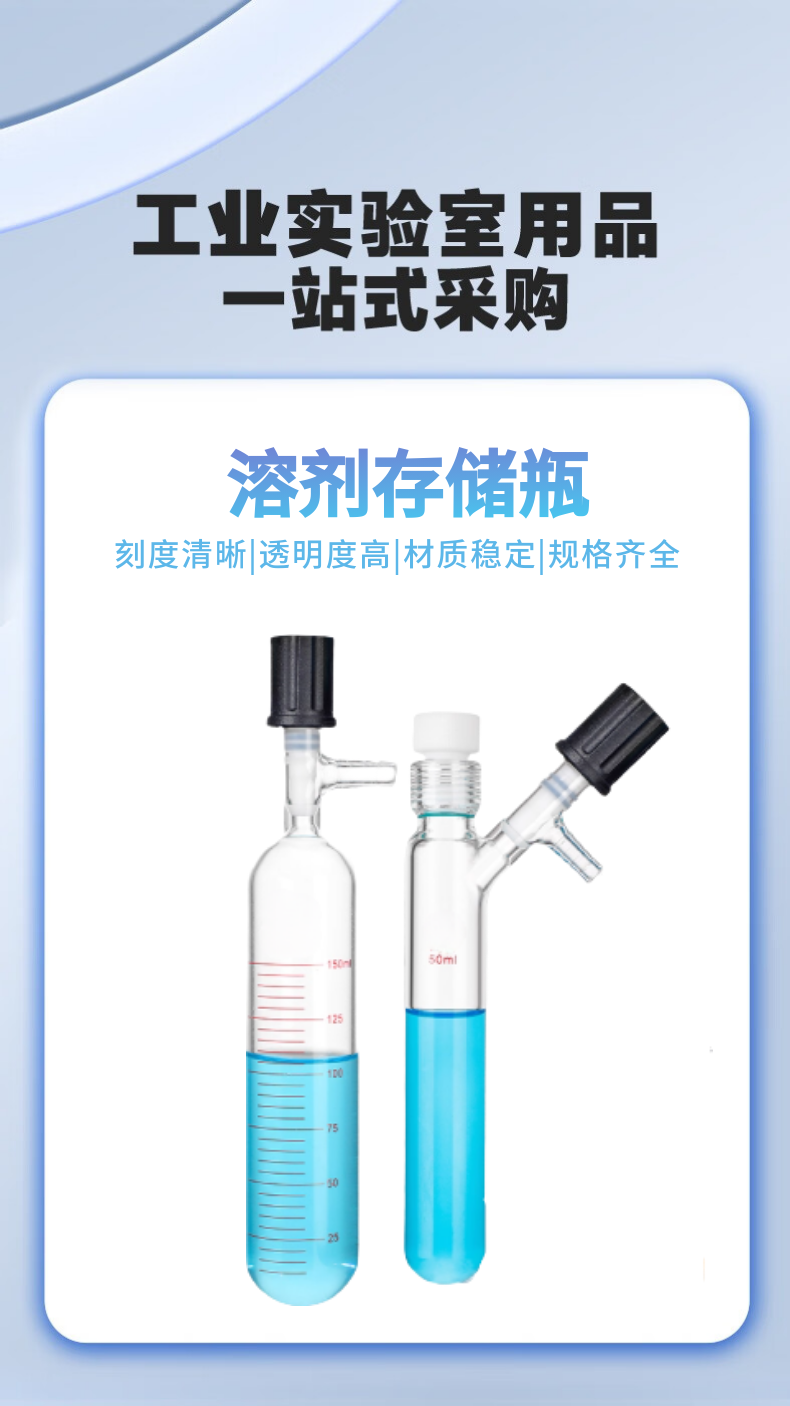溶剂存储瓶,4毫米高真空阀,50毫升
